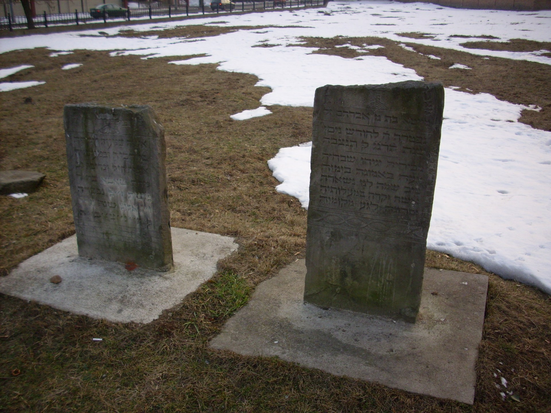 Dzisiejszy kirkut ma wyraźnie zarysowane ogrodzenie, które powstało pod koniec lat 80. i obejmuje część pierwotnego obszaru nekropolii – dawniej cmentarz był większy i rozlewał się szerzej po zboczu wzgórza. Plan cmentarza opisywany jest jako nieregularny wielobok, dostosowany do ukształtowania terenu: po jednej stronie spada ku ulicy, po drugiej graniczy z najstarszą częścią cmentarza katolickiego, którą od kirkutu oddziela jedynie mur. Wrażenie robi właśnie ta bliskość – dwa różne wyznania, dwie tradycje pochówkowe, a jednak wspólna przestrzeń śmierci i pamięci, dzieląca jeden fragment miejskiego krajobrazu.